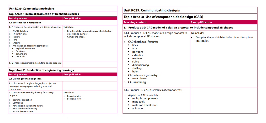 This is assessed by a set assignment. In this unit you will learn how to use sketching and engineering drawings to communicate your ideas. Topics include: